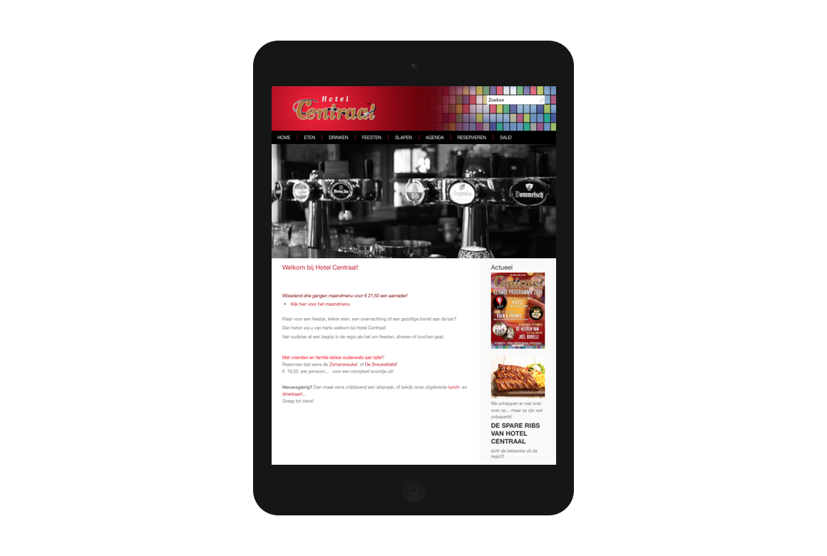 Een feestje, lekker eten, een overnachting of een gezellige borrel aan de bar.. Hotel Centraal! Website voorzien van een nieuwe look en een up-to-date CMS systeem.