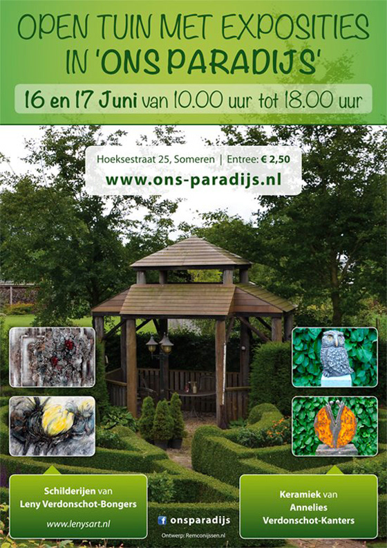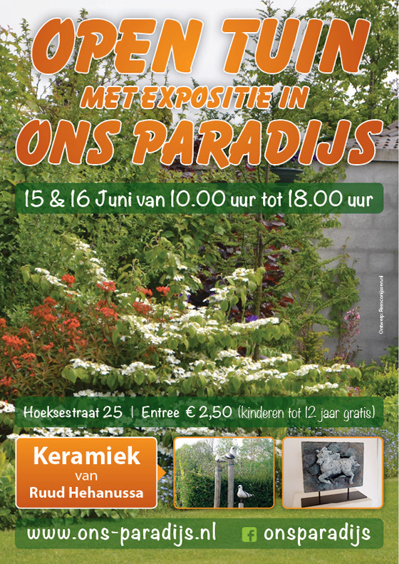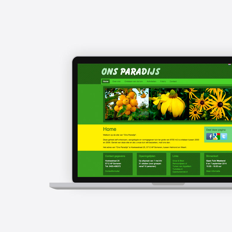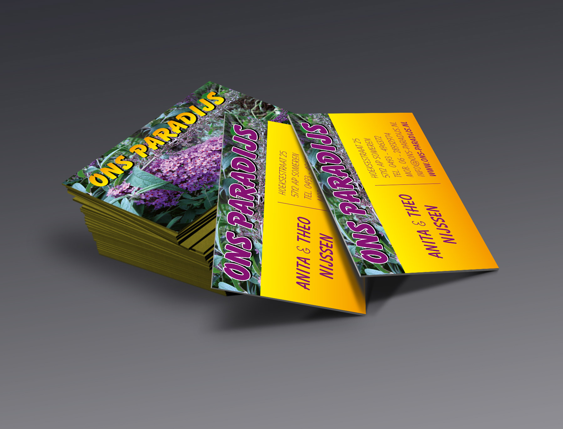 Ontwerp visitekaartjes, website en diverse posters voor Ons Paradijs.