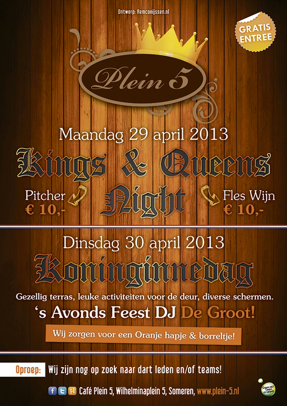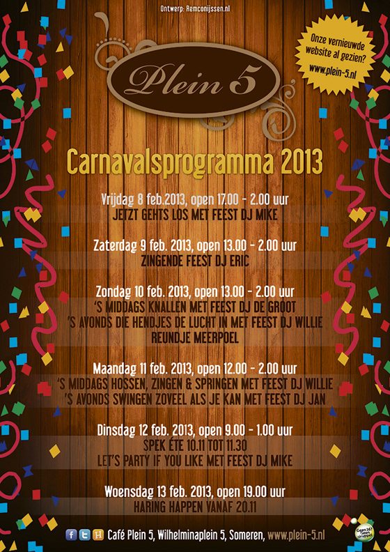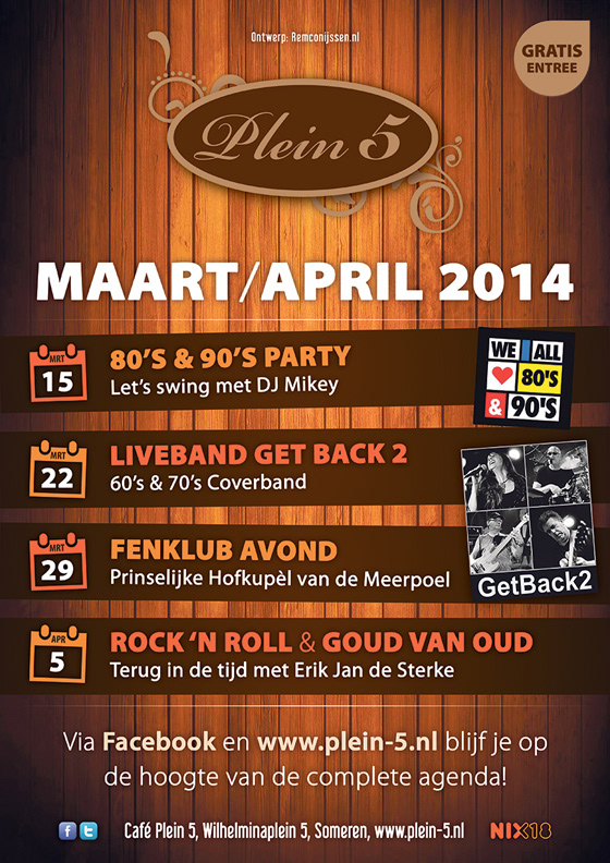 Naast het ontwerp van de posters hebben wij ook het logo en de website van Café Plein 5 ontworpen. Het café bestaat helaas niet meer.