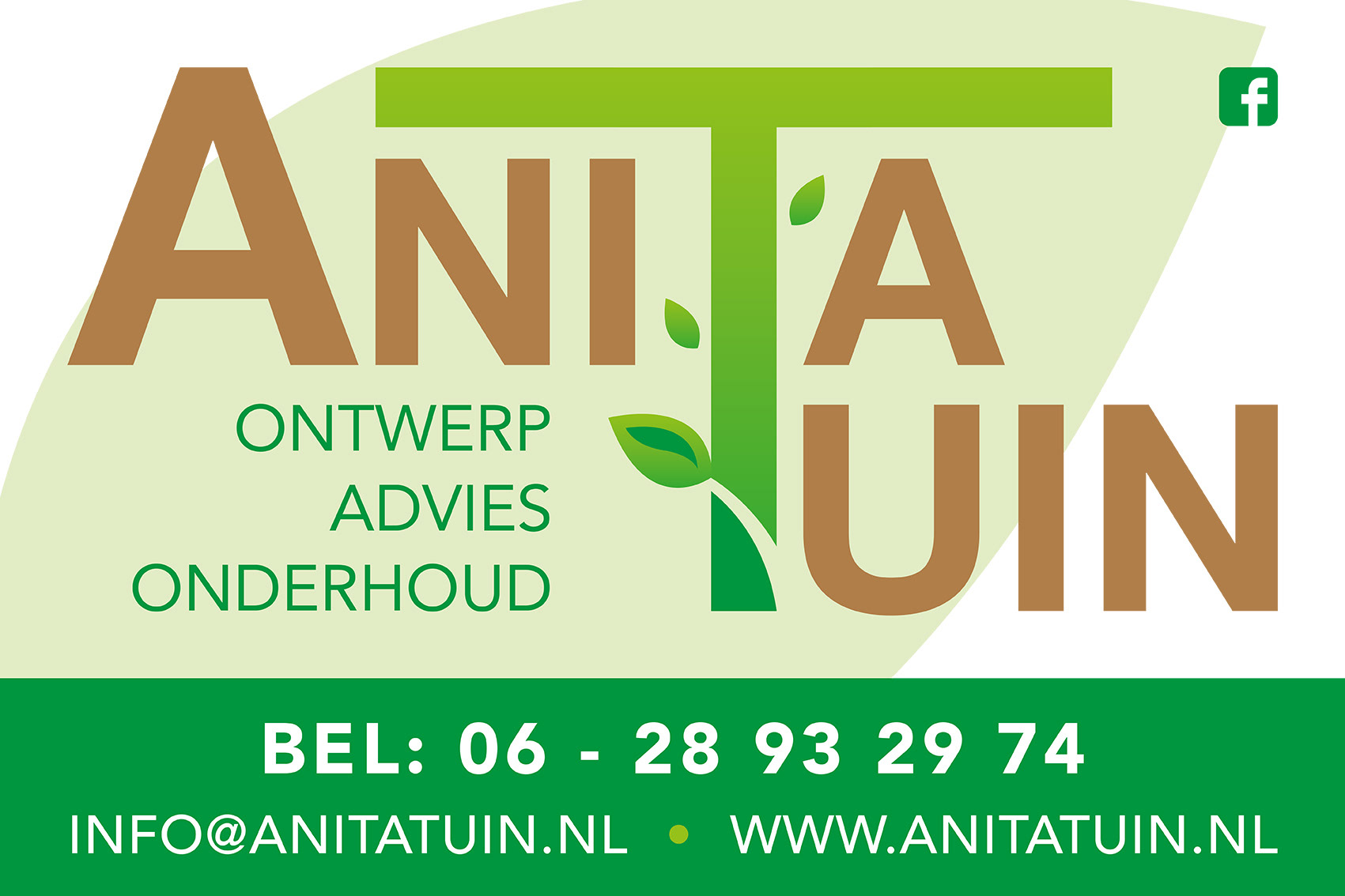 Reclamebord voor Anita Tuin, rechtstreeks gedrukt op kanaalplaat. Geschikt voor buiten gebruik.